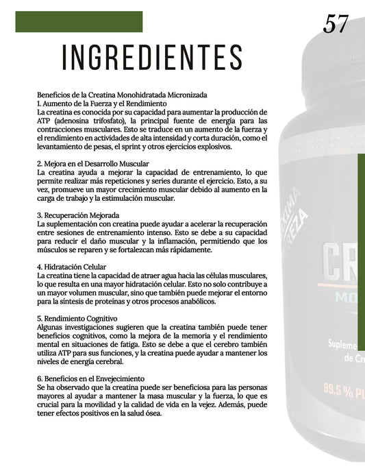 Creatina Monohidratada Micronizada - 99.55% Pureza